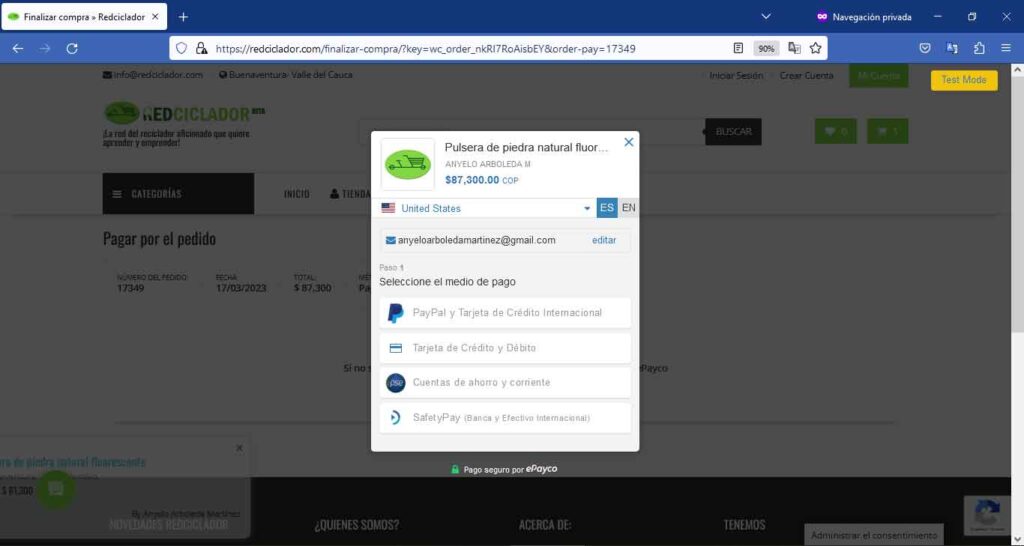 Selecciona el país y el método de pago de tu preferencia.