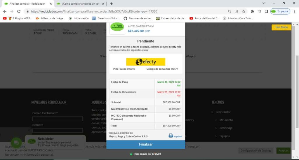 Finaliza el proceso de pago.