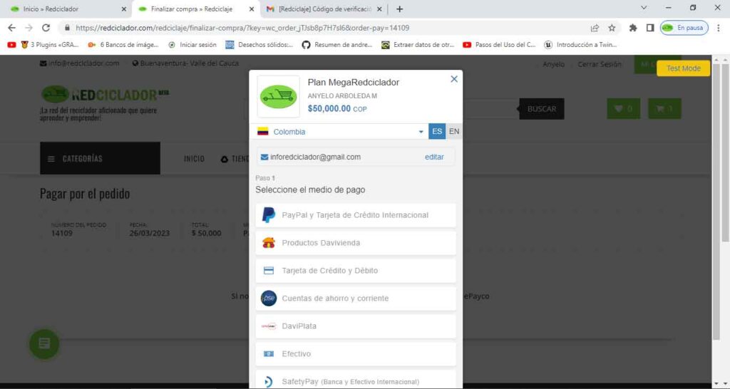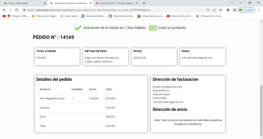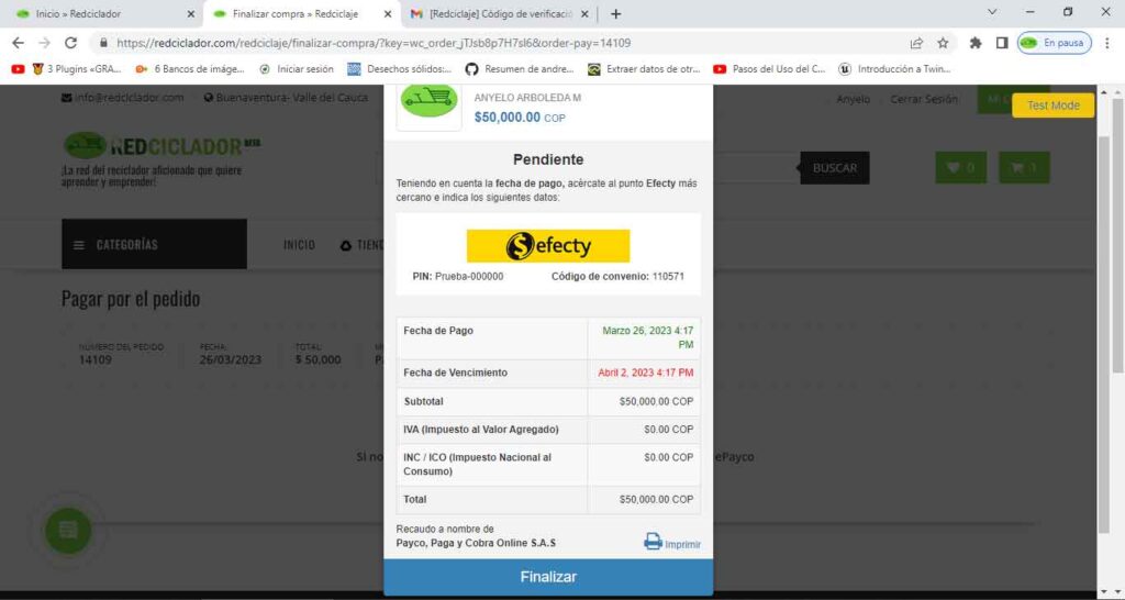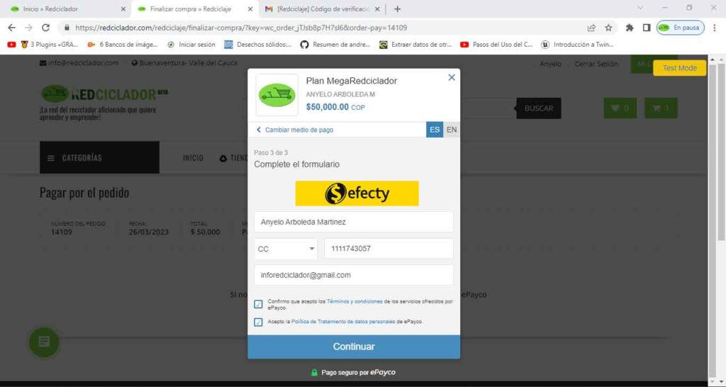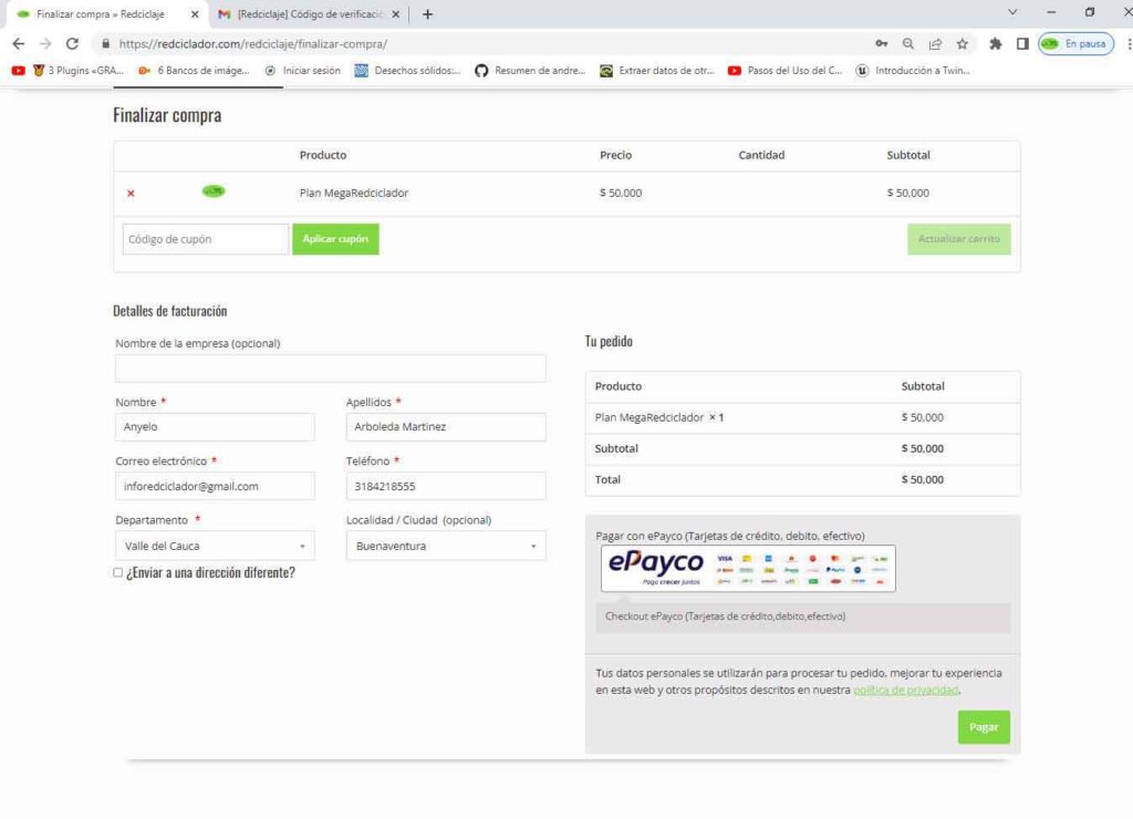 Verifica tus datos en el formulario de finalizar compra y da clics en el botón pagar.