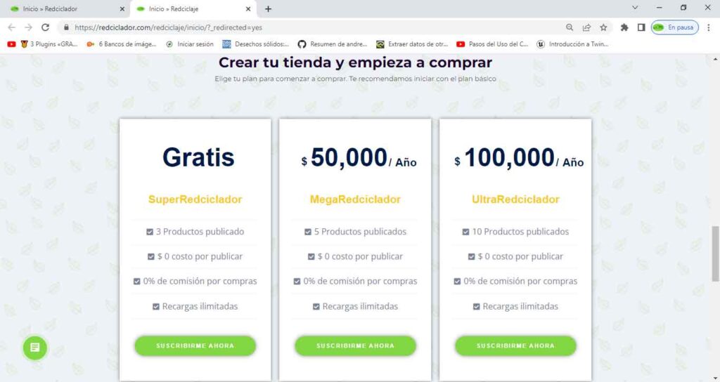 Selecciona el plan de tu preferencia para crear tu tienda de Redciclaje.