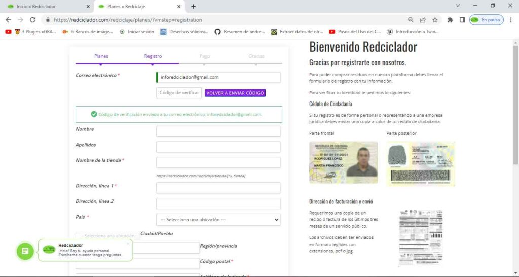 Rellena el formulario de registro, verifica tu correo electrónico para poder continuar con el registro y carga los archivos de identificación para crear tu tienda.