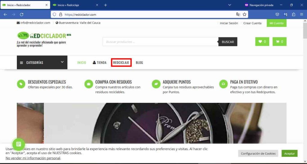 Entra a Redciclador.com y da clic en Redciclaje en el menú principal.