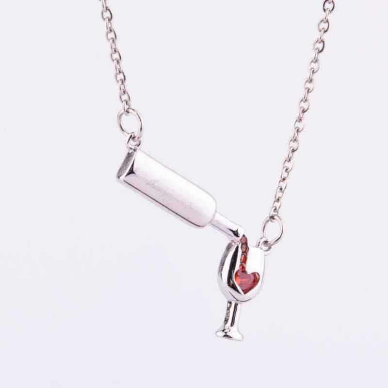 Collar con colgante de copa de botella de vino para mujeres, collar de cadena de saludos de amor, collar de corazón de esmalte rojo