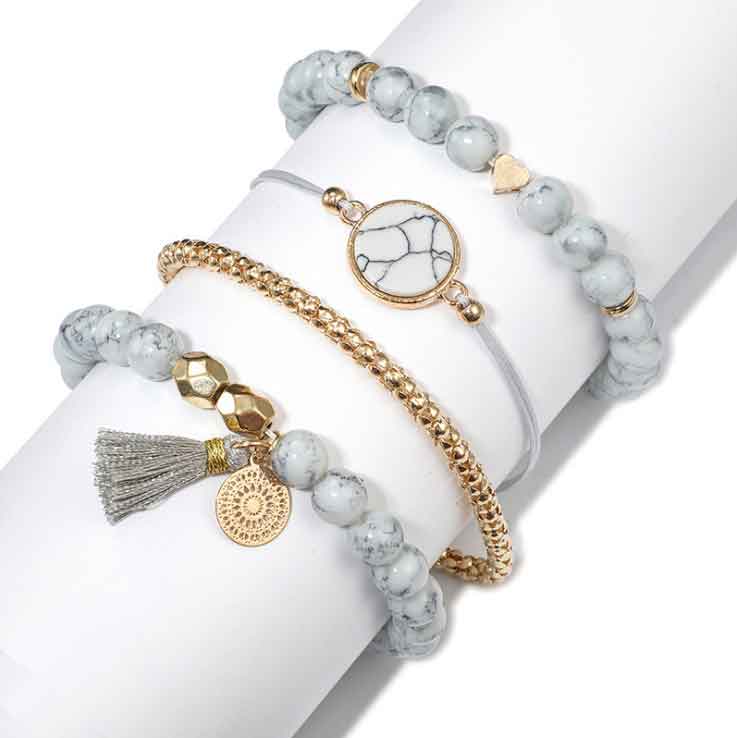 Conjunto de pulseras con piedra de pino con flecos huecos