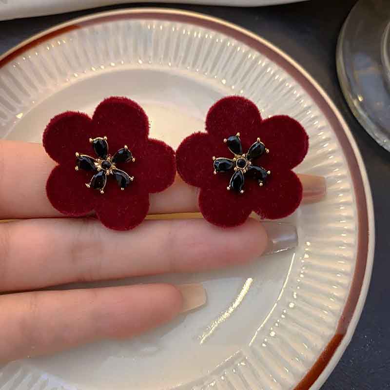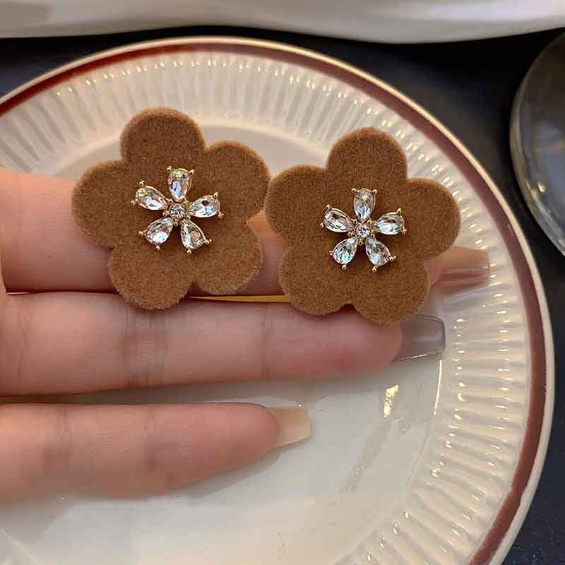 Pendientes de botón con flores y diamantes