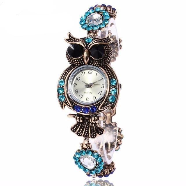 Reloj de pulsera con forma de búho de cuarzo de acero inoxidable vintage elegante para mujer
