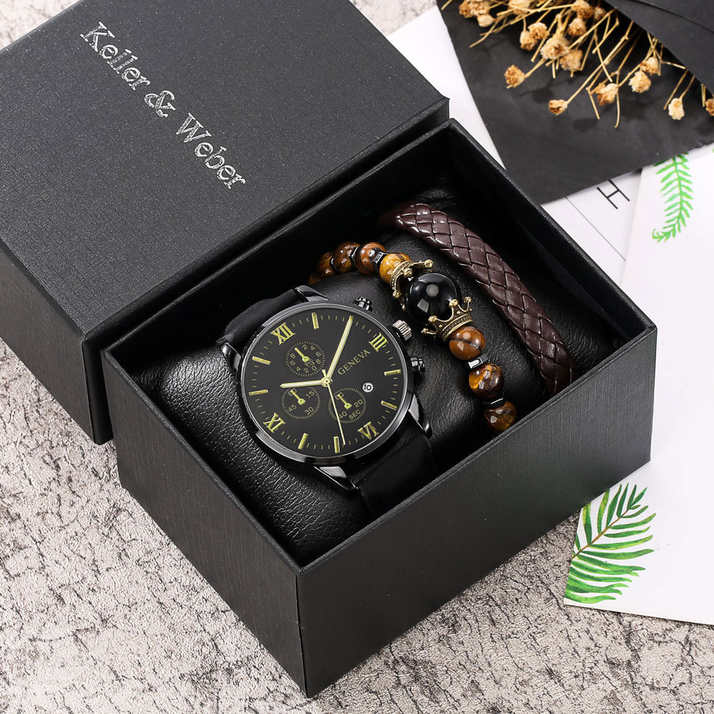 Reloj de pulsera de cuarzo más 2 pulseras para hombre