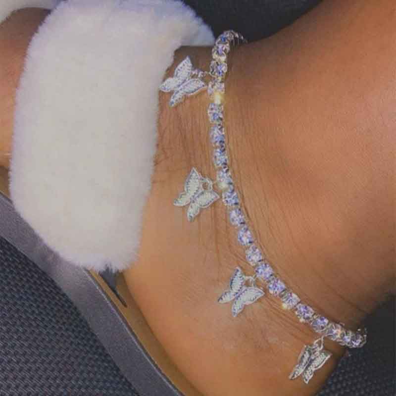 Tobillera con diamantes y colgantes de mariposas